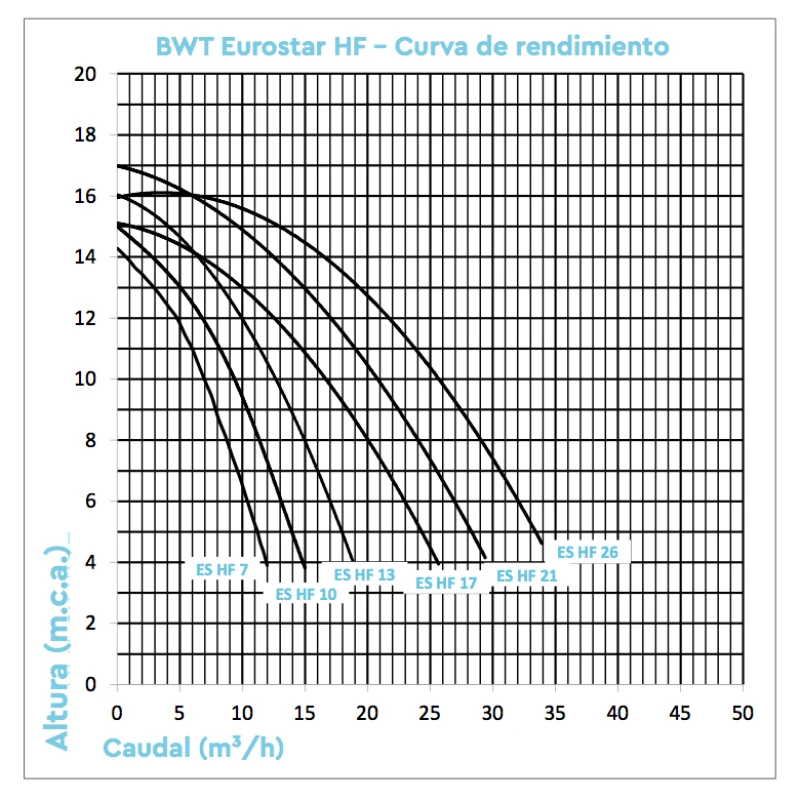 Bomba BWT Eurostar HF curva de rendimiento