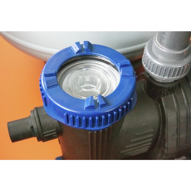Un elemento añadido en este modelo de bomba es su prefiltro. La bomba tiene la función de succionar el agua de la piscina y conducirla a través del sistema de conductos de filtración, para garantizar la limpieza del agua. Con el fin de reducir la carga de filtración del filtro e incrementar resultados de limpieza del agua, se ha incorporado un prefiltro. El prefiltro retiene los residuos de mayor tamaño, de manera que el filtro tenga una capacidad de retención de impurezas de menor tamaño.