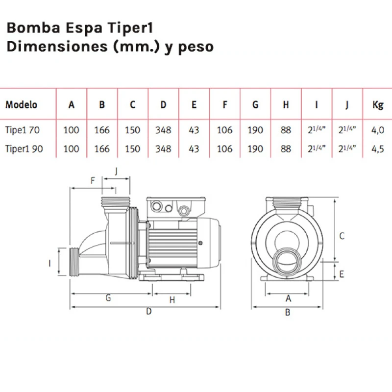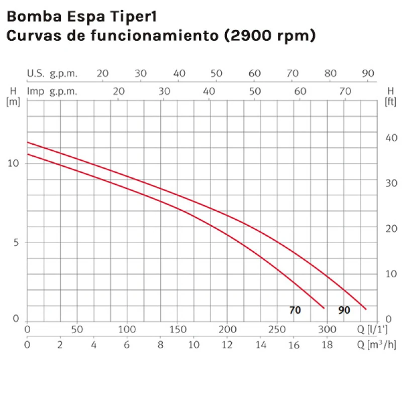– Bomba Espa Tiper1 90 – Monofásica – Potencia de 1,00 cv – hasta 35 m3*