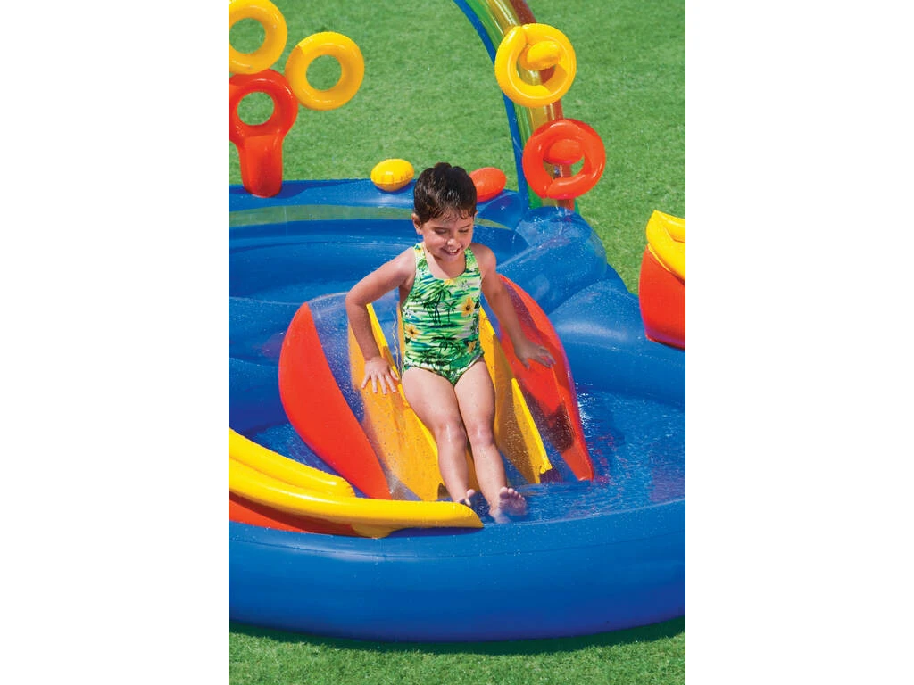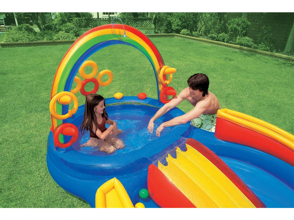 Piscina centro de juegos hinchable de 297cm x 193cm x 135cm Arcoiris. Diseñado para disfrutar de los juegos en jardín más refrescantes y divertidos, perfecto para los peques de la casa.