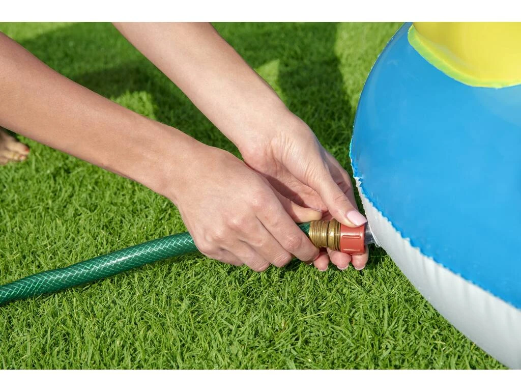 Incluye: 1 centro de juegos Arcoíris con tobogán, válvula de drenaje y parche de reparaciones.
