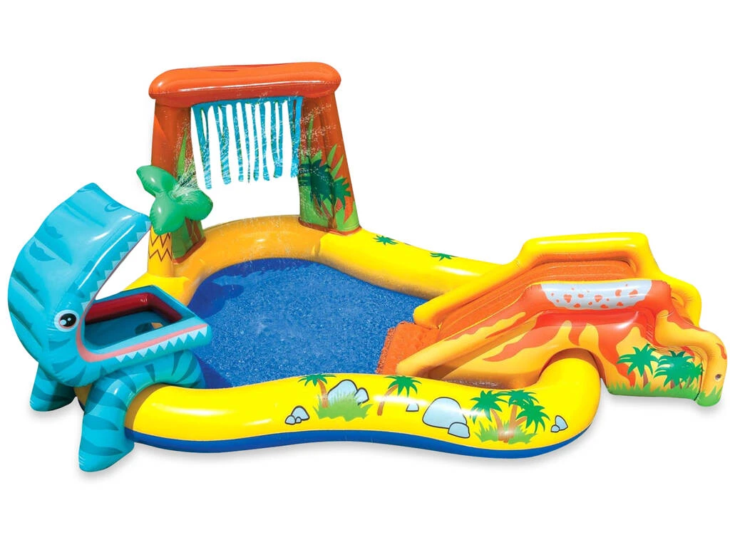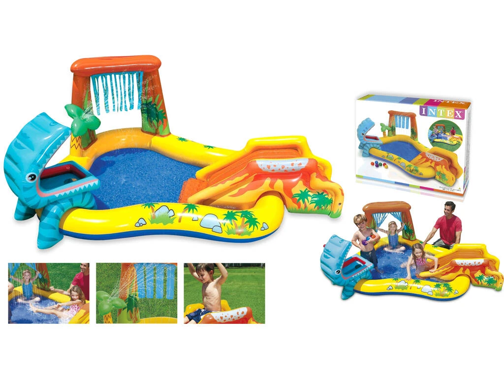 ¡Hora de pasarlo realmente en grande con el centro de juegos hinchable dinosaurio de Intex! ¡Con conexión para la manguera!