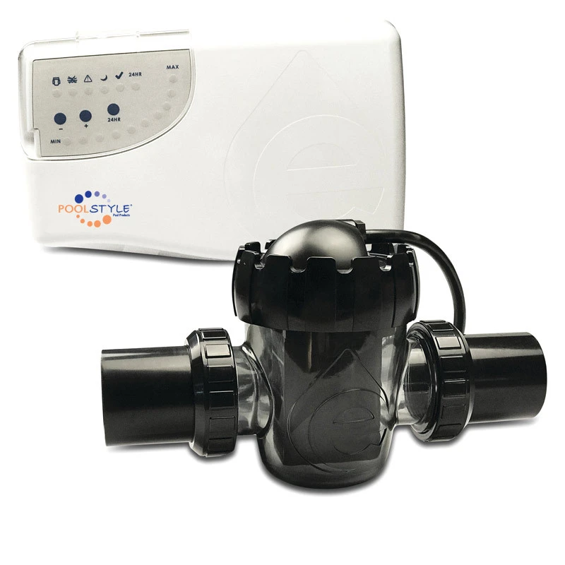 El clorador salino Poolstyle Mini para piscinas, incluye grandes prestaciones técnicas ideal para piscinas de uso privado hasta 90m³