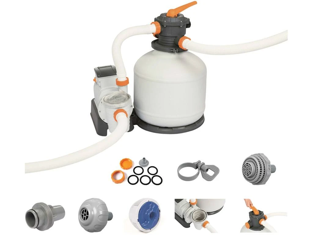 ¡Protege tu piscina y mejora la calidad de su agua! ¡Gracias a esta potente Depuradora de Arena Flowclear de 11.355 l/h! ¡La más potente y efectiva, perfecta para piscinas elevadas de gran tamaño!