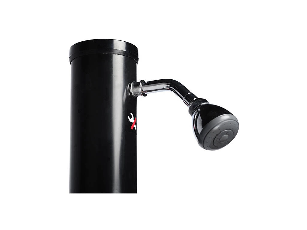 Fabricada en PVC resistente y de alta calidad, perfecta para ser instalada a la intemperie. La ducha tiene tapón de vaciado para el mantenimiento más cómodo.