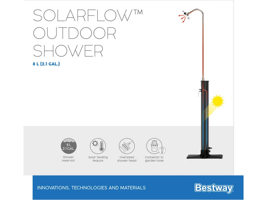 ¡Añade color y estilo a tu piscina! ¡Disfruta de todas las ventajas de la nueva y sensacional Ducha Solar Exterior SolarFlow de 8 l. de Bestway!