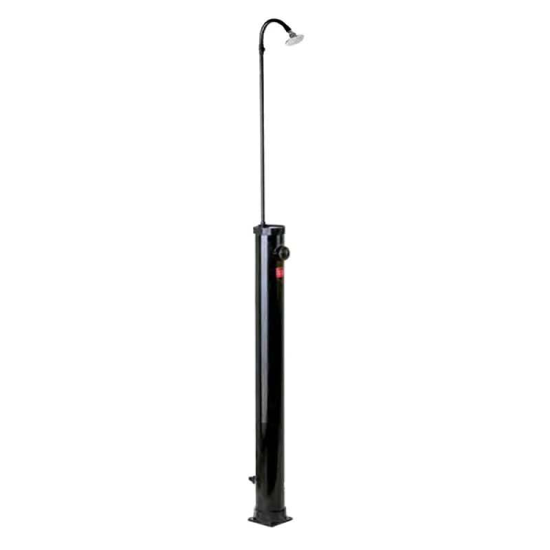 Una ducha de piscina de gran elegancia disponible con grifo de agua con mezclador. Se recomienda instalar en sitios bien encarados al sol para sacar el máximo rendimiento.