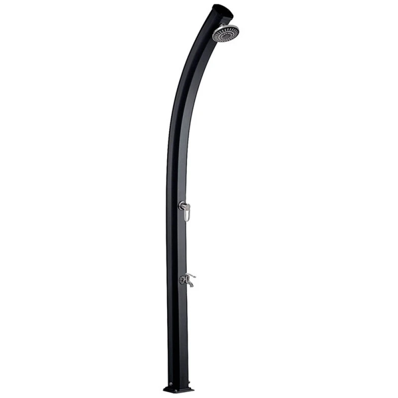 Este material metálico resistente favorece la acumulación de la energía emitida por la radiación solar y reduce la pérdida por evaporación de agua desde el depósito con una capacidad de 25 litros. La ducha Jolly está equipada con un cabezal de ducha estándar, un grifo de agua para pies y un pie de sujección.