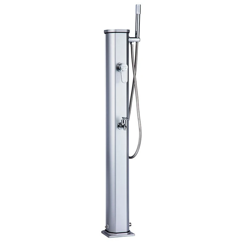 El uso constante de una ducha solar permite ahorrar energía en casa y evitar costes innecesarios para ducharnos en otros momentos cuando podemos aprovechar este tipo de energía gratis. Las columnas de aluminio actúan de conductor térmico al captar los rayos del sol. El agua puede llegar a los 60 °C de temperatura pero gracias al monomando conseguimos la mezcla de agua fría y caliente.