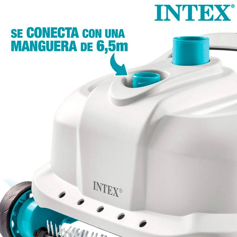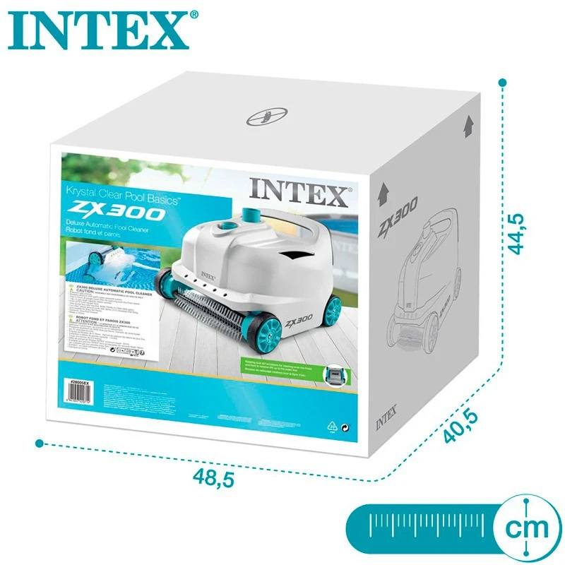 El Limpiafondos Intex automático ZX300 es un modelo compacto de aspiración ideal para limpiar las piscinas del tipo elevadas marca Intex de hasta 6 metros de largo, aunque no es compatible con piscinas autoportantes, hinchables, de acero o enterradas).
