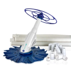 Limpia el fondo y las paredes de su piscina. Funciona con sistemas de filtración de una potencia mínima de 0,5cv y máxima de 1,5cv. Altura máxima de la piscina 1,80 metros.