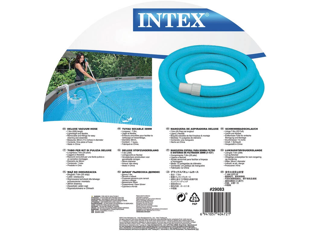 Manguera de 38 mm. de diámetro Intex, justo lo que andabas buscando para poder conectar tu depuradora y aparatos de limpieza a mayor distancia. ¡Invierte en comodidad y salud con este práctico accesorio de piscina!