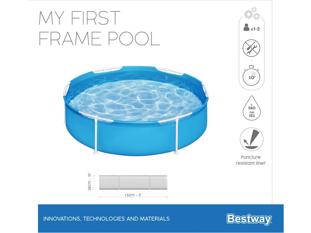Medidas aproximadas de la piscina infantil: 152 cm de largo, 152 cm de ancho y 38 cm de alto.