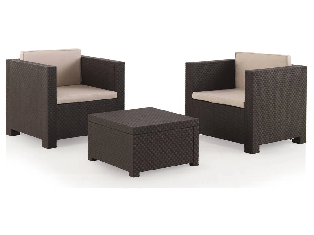 – El pack incluye: 1 conjunto de jardín Diva Tete a Tete Wengué con 2 sillones de 1 plaza y 1 mesa centro.