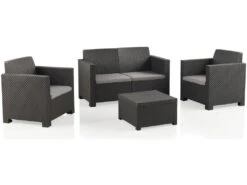 – El pack incluye: 1 conjunto de jardín Evo Confort Antracita con 1 sofá de 2 plazas, 2 sillones de 1 plaza y 1 mesa centro.