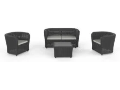 Disfruta de largas horas de descanso, ocio y entretenimiento al aire libre, ahora con la comodidad que aporta este genial set de jardín. Un pack que incluye dos cómodos sillones de una plaza y un gran sofá de dos plazas a juego. Para completar la experiencia, se incluye una práctica mesita del mismo estilo.