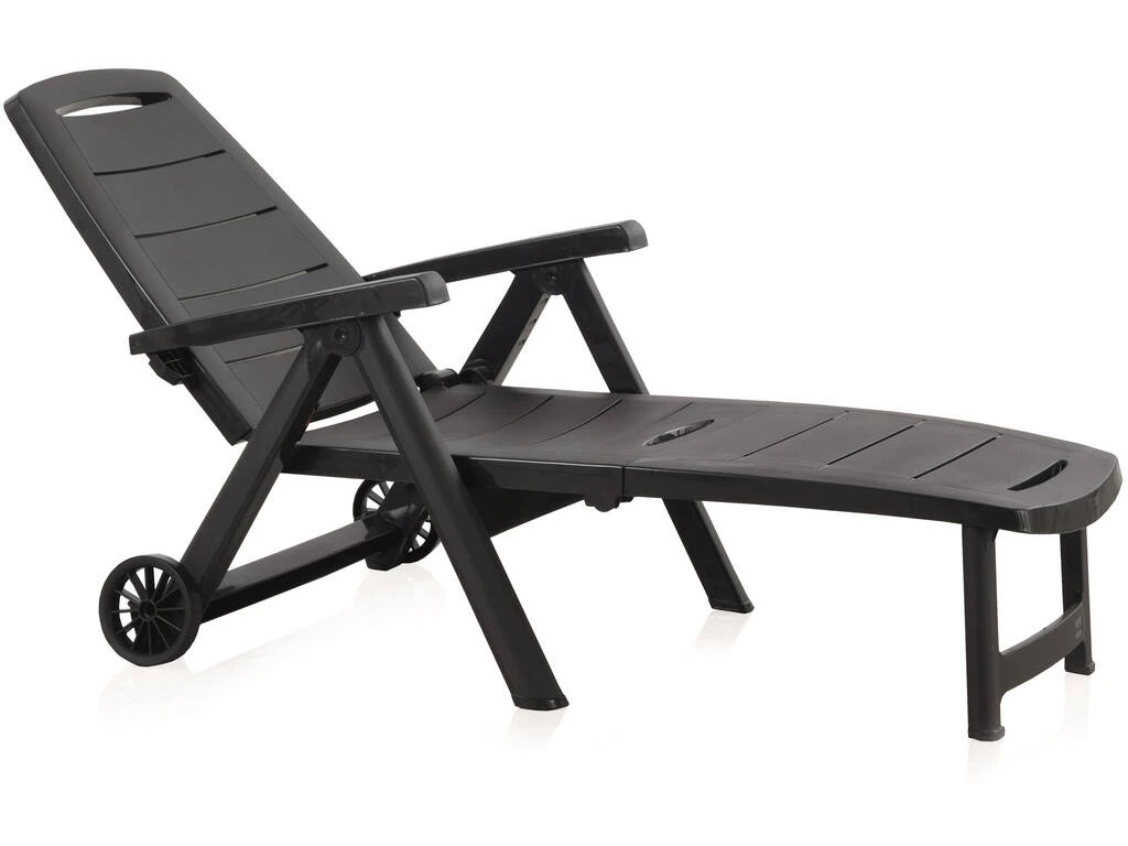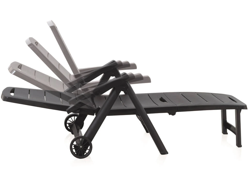 – El pack incluye: 1 tumbona Antibes de color antracita con ruedas, respaldo ajustable y estructura plegable.