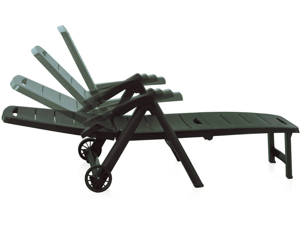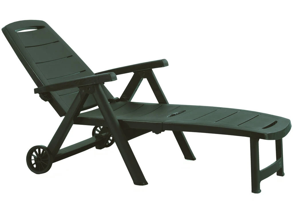 – El pack incluye: 1 tumbona Antibes de color verde con ruedas, respaldo ajustable y estructura plegable.