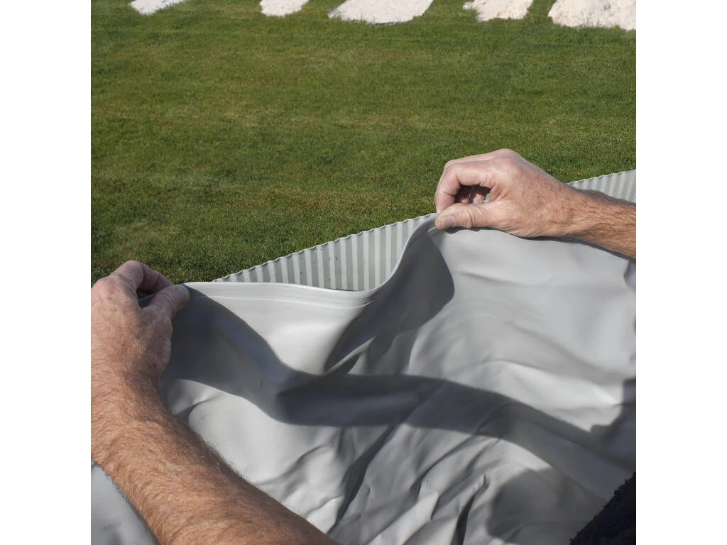 – Liner de PVC gris con grosor 30/100 y tratamiento Anti-Ultravioleta.