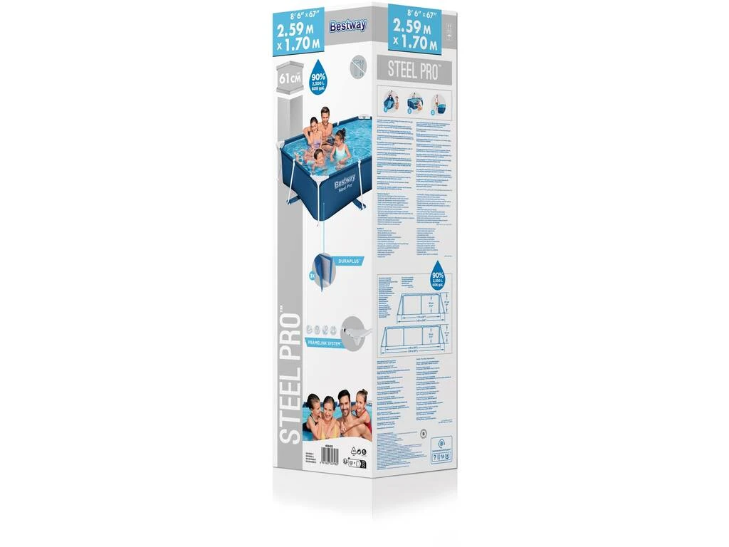 Medidas aproximadas de la piscina: 259 cm de largo, 170 cm de ancho y 61 cm de alto.