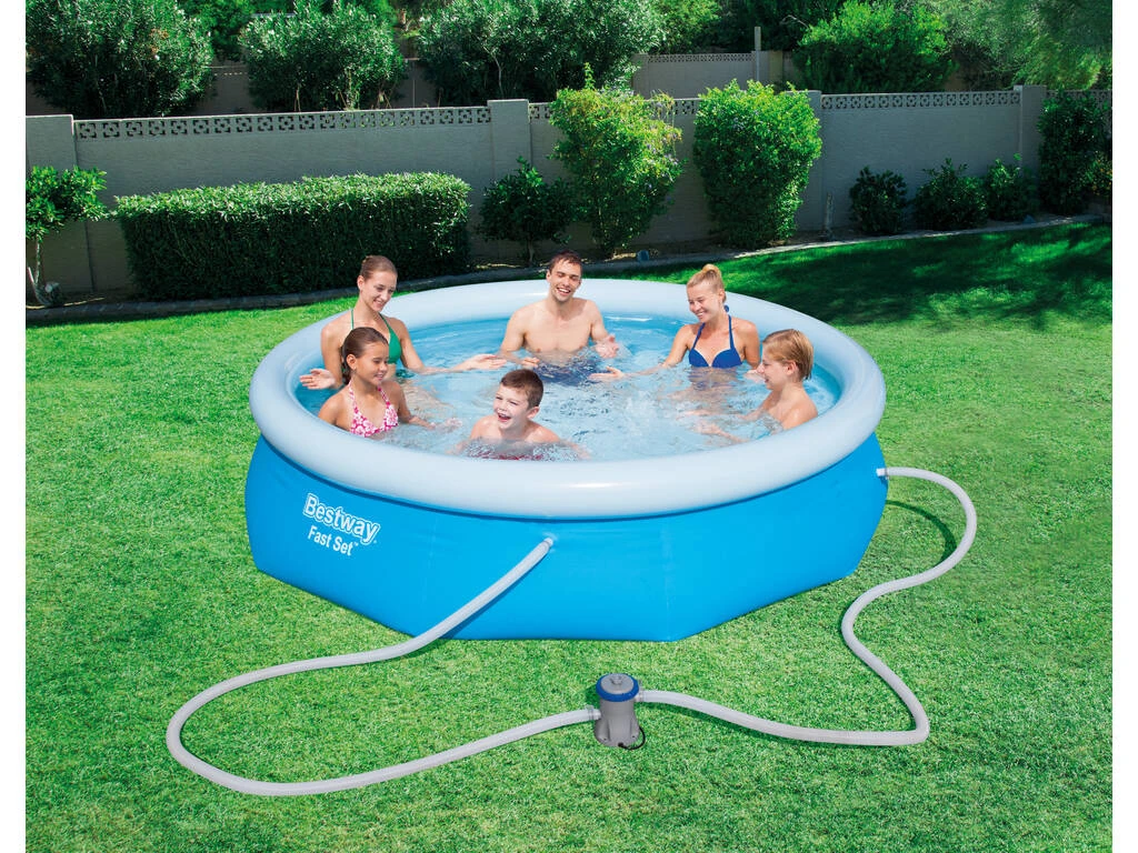 Piscina desmontable Bestway 57270 de 305 cm de diámetro x 76 cm de altura. Ideal para jardín o patio, con borde hinchable y fabricada con materiales resistentes.