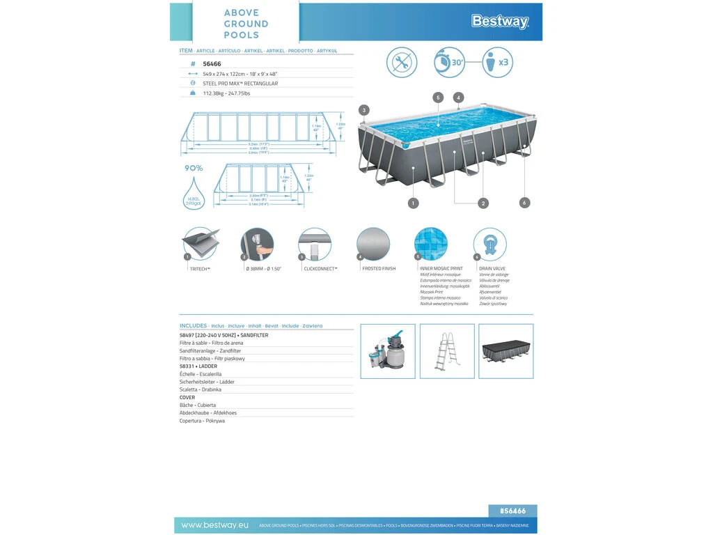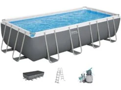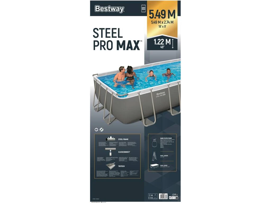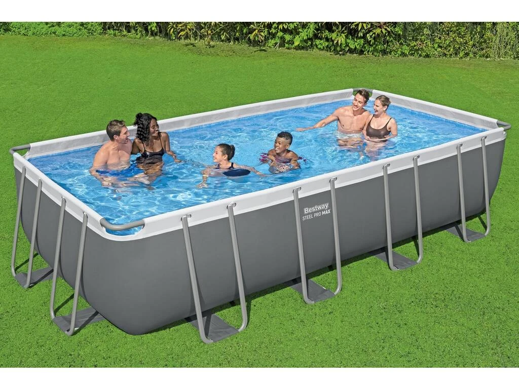 Piscina desmontable rectangular Bestway 56466 de 274 cm de ancho x 549 cm de largo x 122cm de altura. Ideal para jardín o patio, con estructura metálica y fabricada con materiales