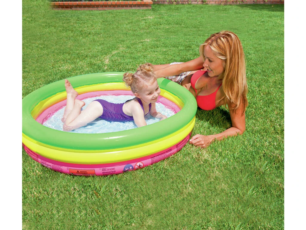 ¡Disfruta de los calurosos días de Verano con esta magnífica piscina infantil hinchable! ¡Con tres aros hinchables!