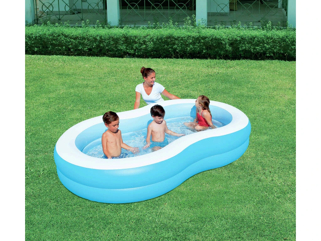 ¡Disfruta del calor del Verano a remojo en esta divertida piscina en forma de 8! ¡Con la nueva piscina familiar hinchable Big Lagoon de Bestway!