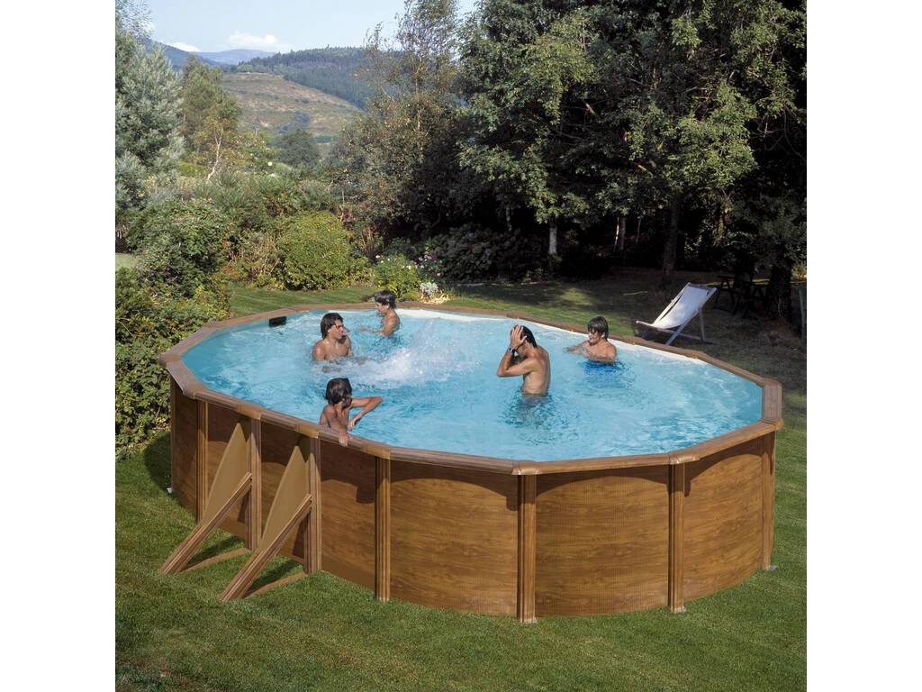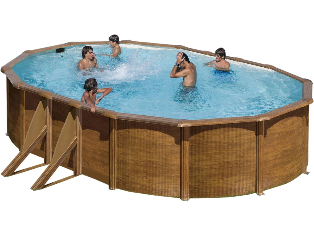 Piscina de pared de acero imitación madera y forma ovalada Serie Pacific. Altura 120 cm. Garantía, calidad y servicio posventa asegurados de la mano del fabricante líder en piscinas desmontables. Rechaze imitaciones de baja calidad y evite problemas.