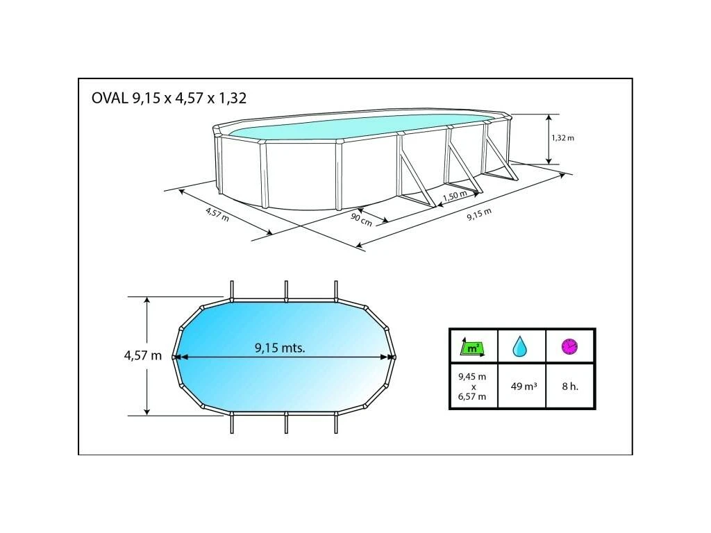 Piscina desmontable Toi 2312 Mágnum 132 de 915 cm de largo, 457 cm de ancho y 132 cm de alto.