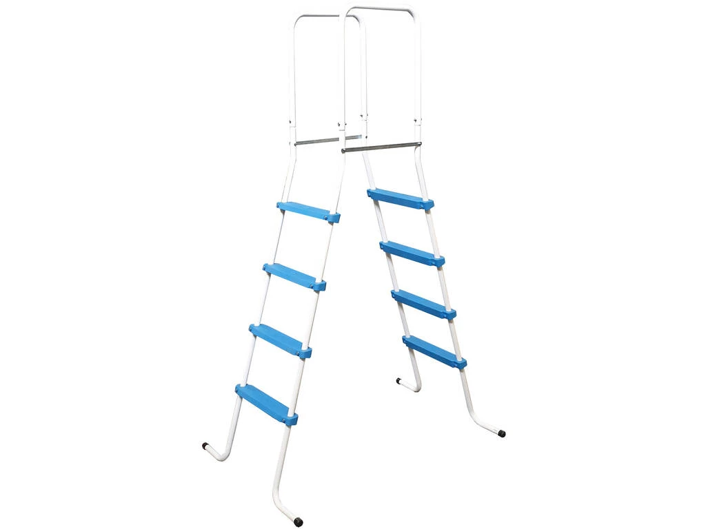 La escalera tiene una altura de 190 cm con 8 peldaños y pasamano para que no tengas problema de acceso a la piscina.