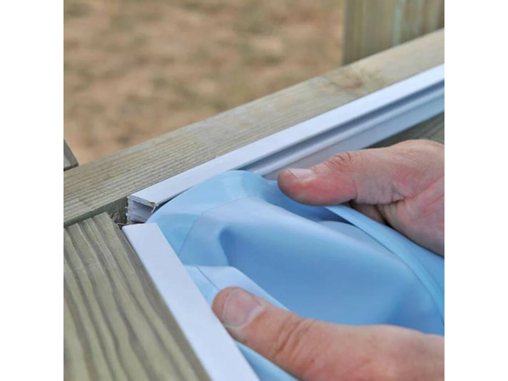 Incluye: Piscina de madera ovalada Bambu con espesor de 46 mm, protector de fondo de 200 g/m², liner 60/100, depuradora de filtro de arena con caudal de 6.000 l/h, protector de fondo 200g/ m², protector de pared, escalera interior de acero inoxidable y escalera exterior de madera.