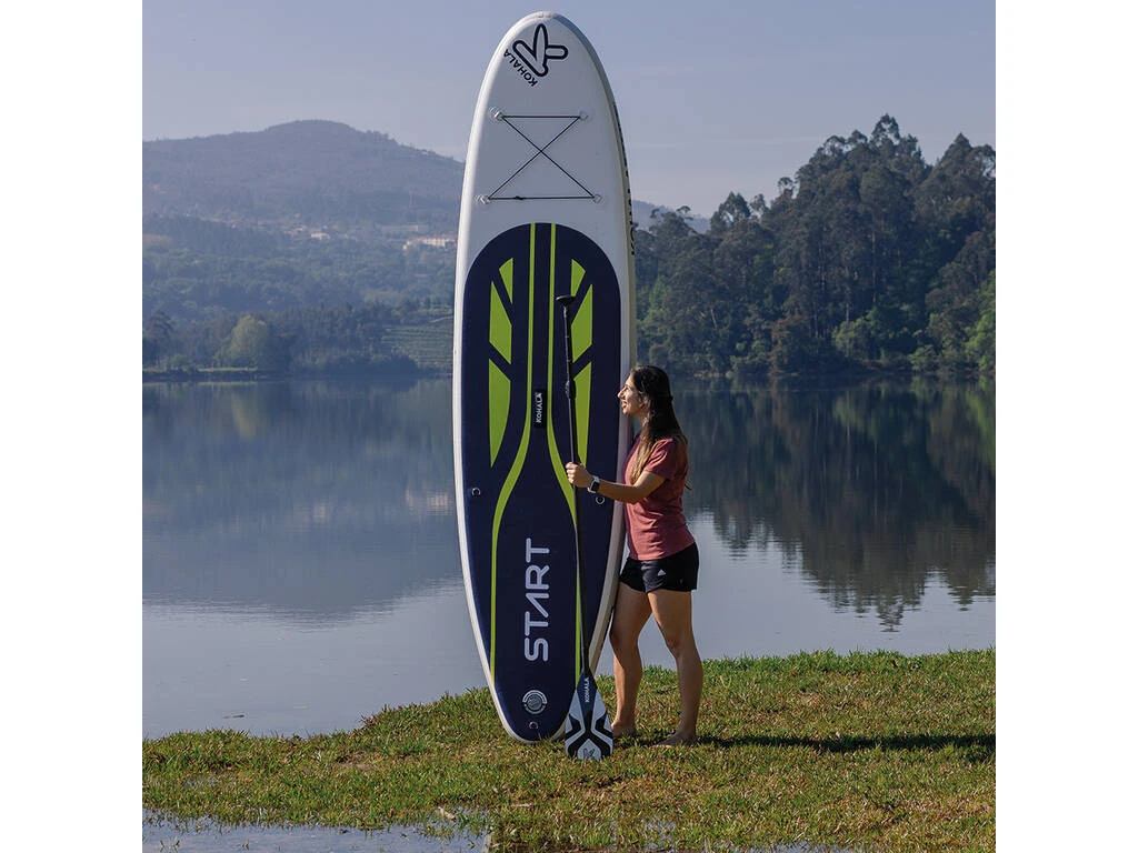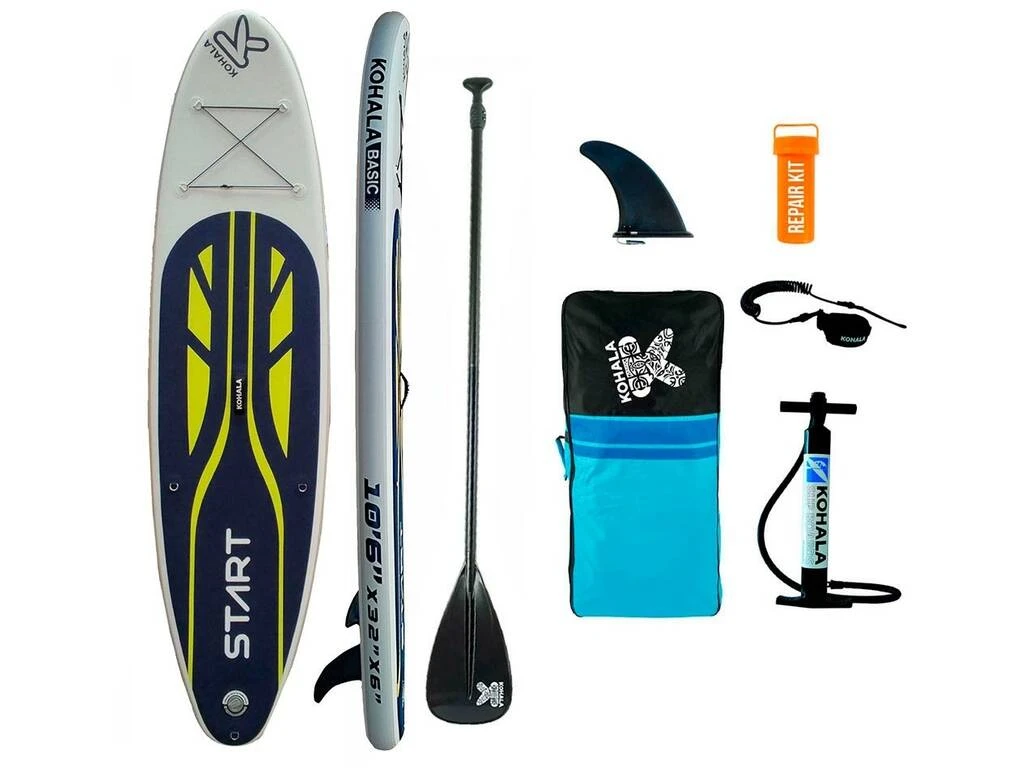 – El pack incluye: 1 tabla hinchable de Paddle Surf Stad-Up Kohala Start de color blanca con 3 aletas (1 central y 2 laterales), 1 remo telescópico de 3 secciones, 1 bomba simple de hinchado manual, 1 bolsa de transporte, 1 correa especial elástica y 1 kit de reparaciones.