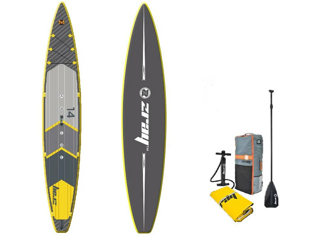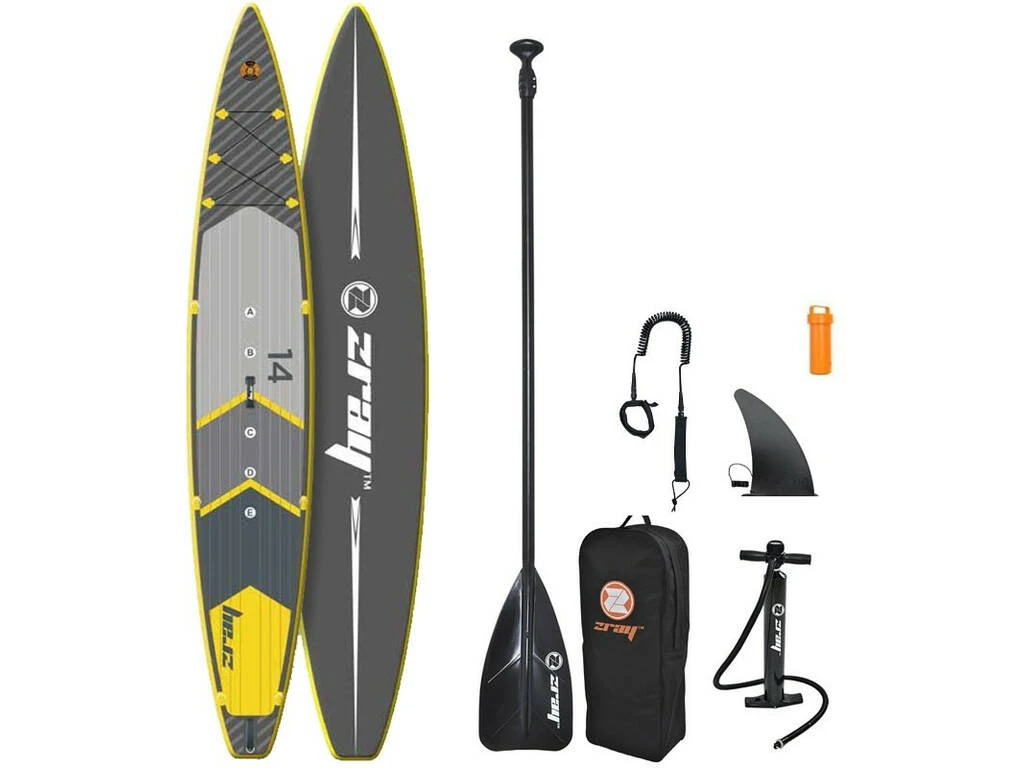 Contenido: 1 tabla hinchable, 1 bolsa de transporte con tiras acolchadas, 1 bomba de aire de alta presión con indicador, 1 remo de aluminio con longitud ajustable de 165-215 cm, anillas inoxidables adicionales para un asiento de kayac (se vende por separado) y 1 aleta central extraíble
