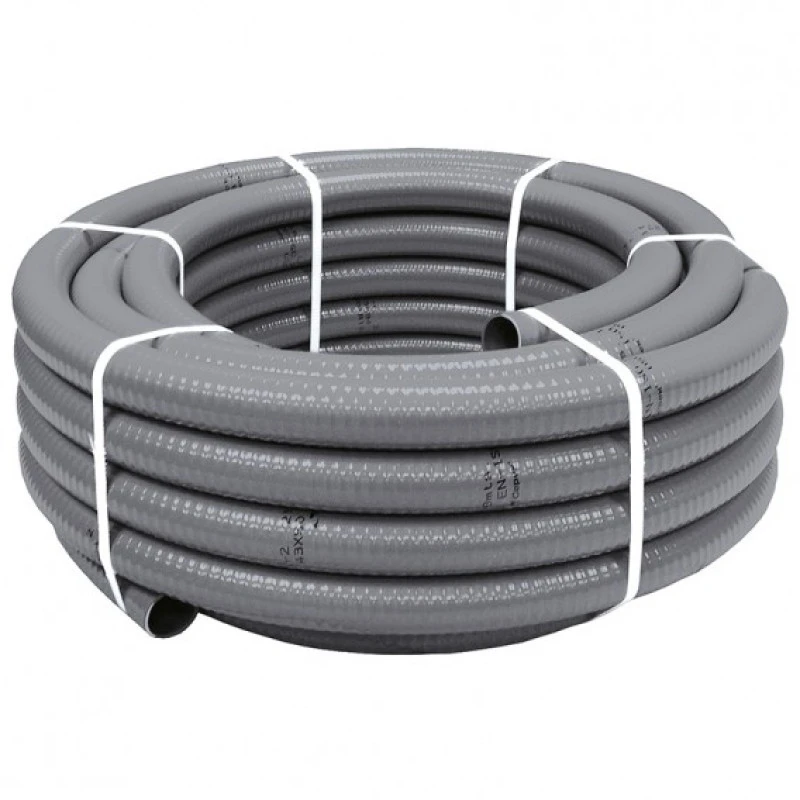 Manguera de plástico gris, con certificación AENOR (D50 es blanca).